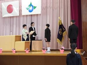一人一人立派な姿で、卒業証書を受け取りました。受け取った卒業証書をじっと見つめ,6年間をふり返っている児童の姿が見られました。たくさんの思い出がうかんでいるのでしょう。