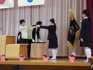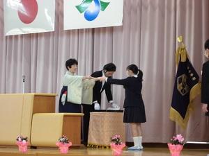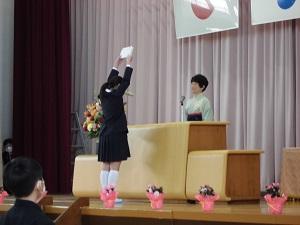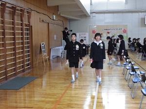 卒業生・星名さんの弾いた校歌をBGMに、進学への道に向かって退場しました。