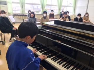 2020年3月14日 15時00分卒業式のためにいろいろな練習をしてきた子ども達。中でも、ピアノ伴奏担当児童は、早くから練習をしてきました。規模縮小を受け、練習の成果を当日発揮できない5年児童には、修了日当日、教職員向けのミニコンサートで披露してもらいました。