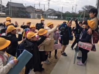 2020年3月4日 12時23分突然の修了となった3月2日。子ども達は、たくさんの荷物を抱えて下校していきました。玄関先では、担任と名残惜しそうに話をし、さよならじゃんけんをして笑顔で帰って行きました。長い休みだけど、元気に過ごしてくださいね。