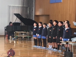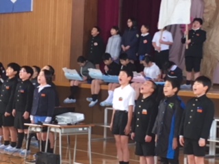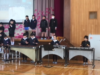 4年生は、最後の練習にと、大きな声で感謝の気持ちを伝えていました。自分達で作ったスライドをバックにした演奏も上手になりました。
