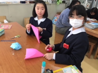 昨日お昼休みに、図書室・多目的ホールにて「家族に感謝のしおり作りの会」を行いました。