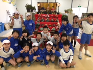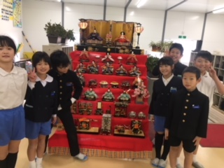 暖冬で暖かい日が続いています。春がもう来ている陽気ですが、学校の玄関にも毎年恒例・地域の方に寄贈いただいた雛人形が飾られました。毎日登下校する子ども達の心を和ませてくれています。