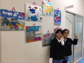 体育館通路の廊下には、3年生児童の作品が掲示され、通る子ども達を楽しい気持ちにしてくれます。