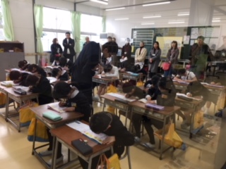 土曜日開催とあって、たくさんの家族や地域の方に参観していただきました。子ども達は、お家の人にがんばる姿を見てもらおうと、いつものように元気いっぱい学んでいました。仮校舎での初めての参観日でしたので、学校施設を見学してもらいよい機会ともなりました。