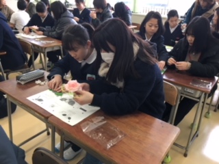 25日の授業参観日を利用して、6年生は親子でコサージュ作りをしました。例年、本校の卒業式では、6年生がこの親子で作成した思い出のコサージュを胸に付けて卒業します。今年は、地元遠塚の水引を使ったコサージュです。短い時間でしたが、親子でふれあう時間ともなりました。