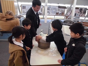 石臼をひく体験をし、「昔は重くて大変だ。」と言っていました。