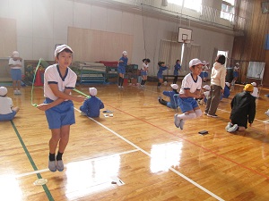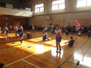 クラスが協力する8の字跳びでは、声をかけ合って大縄を連続で跳び,どのクラスも新記録を出していました。クラスが一体になる良い行事にすることができたようです。