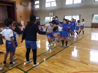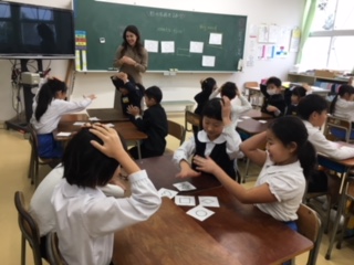 毎回、低学年は、河北台中学校のアマンダ先生と、3~6年生は、英語アシスタントの助実先生と活動しています。どちらの先生も、いろんな工夫と笑顔で指導してくださるので、子ども達は楽しく学び、力に繋がっています。
