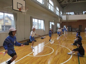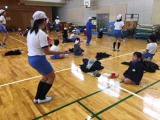 初めて参加する1年生は、ちょっと緊張しながらも、6年生に応援してもらいながら前回し跳びに挑戦しました。