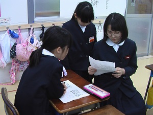 昨日お昼休みに、図書室・多目的ホールにて「家族に感謝のしおり作りの会」を行いました。