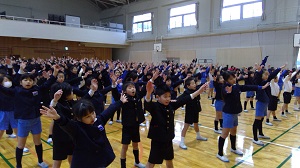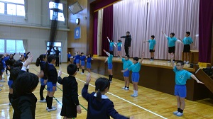 2020年1月15日 09時02分今日は3学期はじめのげんきっずデーです。寒さに負けず、児童は元気に体操をしました。