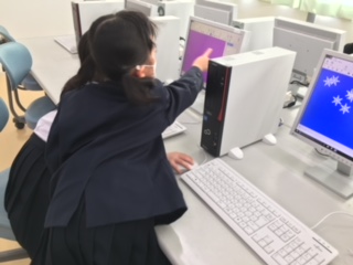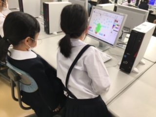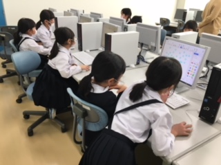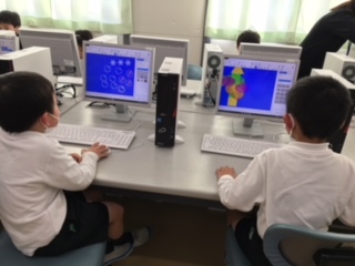 明日はクリスマス・イブ。1年生が、パソコンでクリスマスツリーを作成していました。初めてお絵かきする子もいましたが、友だちと教え会いながら楽しく作成していました。