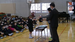 昨日で二学期が終わり,児童は今日から冬休みです。終業式では児童の頑張りの表彰・校長先生からのお話・猪尾先生とのお別れ式・冬休みの生活の確認などを行いました。