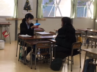 仮校舎での初めての通知表渡しです。どのクラスでも、和やかに懇談が進んでいました。子ども達の成長に繋げるため、保護者の方と担任が連携する大切な機会です。2学期のがんばりと3学期に向けての課題を共有し、有意義な冬休みを過ごしてもらいたいと思います。