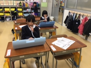 仮校舎に引っ越しして、1ヶ月が経とうとしています。特別教室が少ないけれど、どの教室も明るく、子ども達もすっかり仮校舎での生活に慣れ、元気に過ごしています。