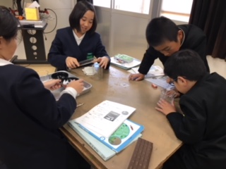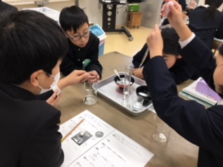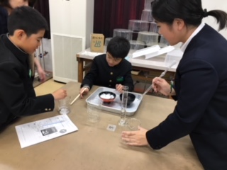 2019年12月16日 15時10分5年生が、理科実験を行っていました。食塩とミョウバンを一生懸命溶かしながら、水に溶ける様子を観察しています。実際に実験を通して友だちと一緒に楽しく学んだ知識は、楽しい思い出とともに子ども達の心に残りますね。