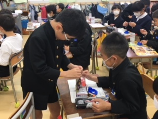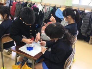 昨日お昼休みに、図書室・多目的ホールにて「家族に感謝のしおり作りの会」を行いました。