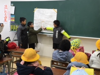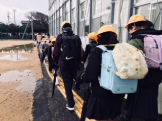 大雪や強風等の自然災害の際、子ども達が安全に気をつけて下校できることを目的に、今年度2回目の訓練を行いました。仮校舎になり、集合場所が変わったので心配しましたが、5・6年生がリーダーシップを発揮し、スムーズに下校することができました。
