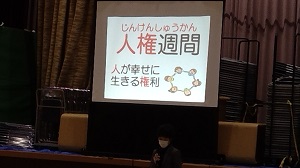 校長先生が人権週間の話をしました。