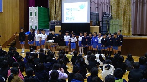 まなびいず委員会と4年生が、学習や生活の目標について提案しました。
