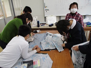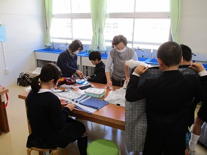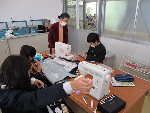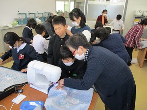 5年生のエプロン作り。この日は、いよいよミシンを使っての作業です。初めてミシンを使って作業する児童も多いので、たくさんのミシンボランティアの方に参加いただきました。一人一人丁寧に対応していただいたおかげで、エプロン作りが進みました。ボランティアの皆様、お忙しい中ありがとうございました。