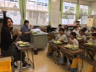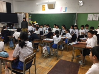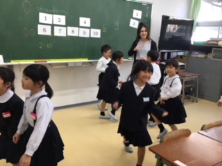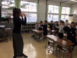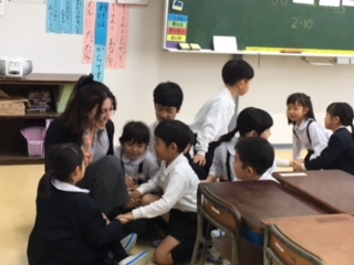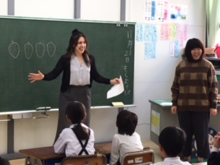 河北台中学校のALTアマンダさんと一緒に、1・2年生が英語活動に取り組みました。アマンダさんの笑顔あふれる表情に、英語を知らない子ども達も楽しく学びました。