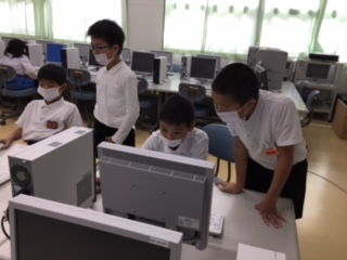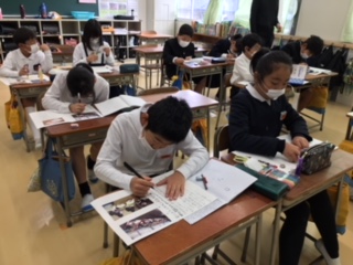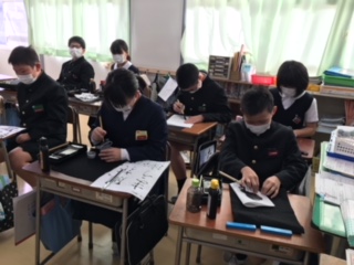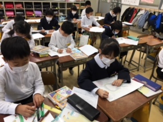 どの教室でも、マスクを全員で着用し、授業を受けています。自分とみんなを守るため、全員でやりきるところが、七塚っ子のいいところです。