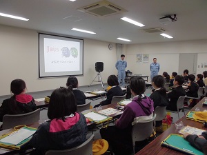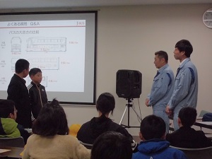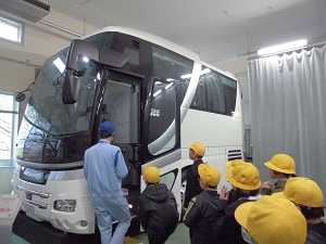 バスがどのように作られているのか、どんな機械が使われているのか、どんなことに気をつけて仕事をしているかなど、工場の勉強を行いました。