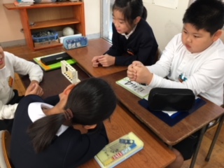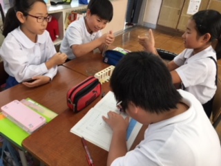 4年生が、空気は温めるとどうなるかの理科実験を行っていました。仮校舎への引っ越しのため、理科室が使えないため教室での実験ですが、実験結果を確かめるため、試験管につけた石けん水の様子をみんなでしっかりと観察していました。