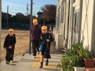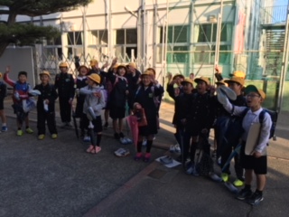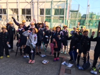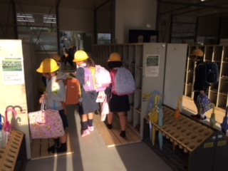 さわやかな秋晴れのもと、仮校舎への登校第1日目。