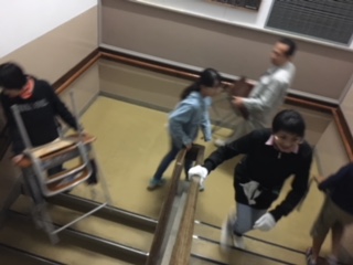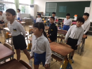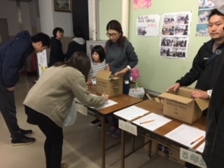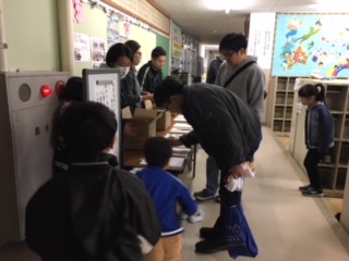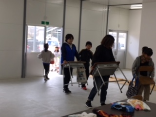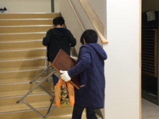 16日(土)PTA引っ越し奉仕作業で、親子で本校舎から仮校舎へ机をはこぶ作業を行いました。