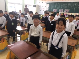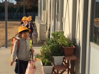 どちらの校舎に行くのか迷っている子も数名いましたが、みんな元気にあいさつして玄関へ。
