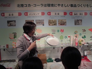 コカコーラ工場で働く人数は児童が思っていたより少なく、機械で自動的に作業する仕事が多いことに気づいていました。