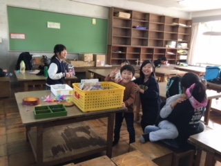 学童児童は、なかよく図工室でお留守番していました。月曜日からは、松浜公民館に集団下校します!