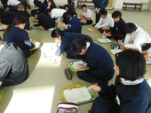昨日お昼休みに、図書室・多目的ホールにて「家族に感謝のしおり作りの会」を行いました。