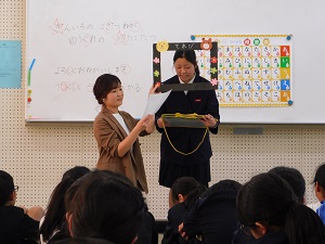 授業が終わっても、亜希先生の周りに児童が集まり、たくさん質問をしていました。亜希先生、素敵な授業をありがとうございました。