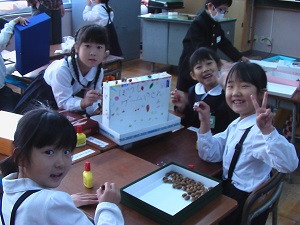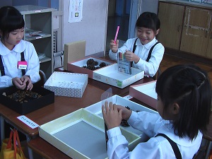1年生が、木津公園で集めたどんぐりや松ぼっくりを使って、秋のお店屋さんの準備をしていました。どのグループも、身近にある秋を感じながら、なかよく相談して楽しんでいました。