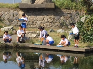 2019年11月8日 08時30分1年生が、観察力を磨こうと、国語の時間に学校の生き物や植物の観察をしていました。見たことを、言葉や絵で的確にメモする力は、今後の学習にとても必要です。教室で学んだ観点をもとに、どの子も真剣にメモしていました。