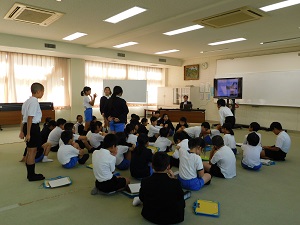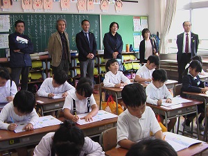 三重県伊賀市の教育委員会の皆様が、本校を視察においでました。学力が向上していることやコミスク事業についての視察です。子ども達が、落ち着いて学習している様子やさわやかな挨拶が気持ちよかったと、たくさんお褒めの言葉をいただきました。他県の方々に授業の様子を参観いただき、本校にとってもよい機会となりました。ありがとうございました。