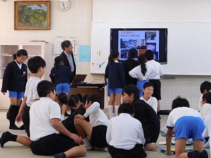 西田幾多郎記念哲学館館長の浅見先生を迎えして、高橋ふみさんについて学ぶ会を今年も行いました。高橋ふみさんは、西田幾多郎先生の姪っ子さんで、本校卒業生の女性哲学者です。子ども達は、自分の夢をしっかりと持って夢を実現させた偉大な先輩がいることを知り、とても誇らしげでした。