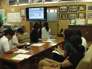温かな人間関係づくりをするためにはどうしたらよいか、教職員みんなで研修を行いました。県センターのスマートスクールネットのオンデマンド教材を使って、いじめ・不登校の未然防止について学びました。アサーション・トレーニングの仕方について学んだので、それぞれの学級で実践していきます。