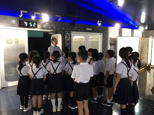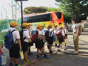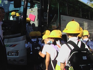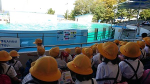 秋晴れのもと、1・2年生はのとじま水族館にバス遠足へ、4年2組は鶴来浄水場とプラネタリウムへの社会見学に出かけました。お楽しみのお弁当が入ったリュックサックを背負って、どの子も嬉しそうに元気に挨拶をしてバスに乗り込みました。
