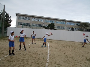 遠くに投げるコツを先生や友達に聞き、フォームを確認しながら投げました。