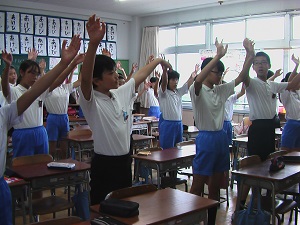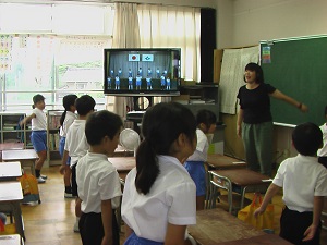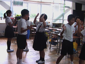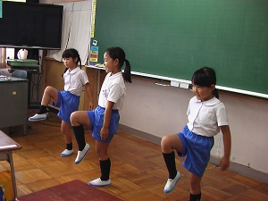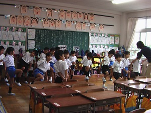 体育館改修工事のため、毎週水曜日のげんきっず体操は、各教室で体育委員会のビデオに合わせて行っています。狭い教室ですが、朝1番に体を動かし元気いっぱいの子ども達です。