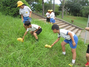 2年生が、生活科の時間、木津公園に虫探検に行きました。秋の虫を捕まえようと、虫かごをもち、意気揚々と出かけました。