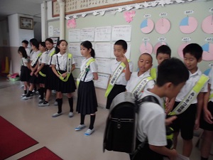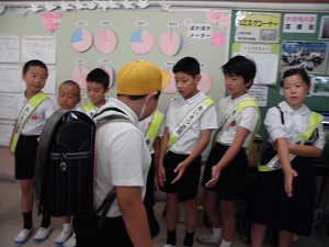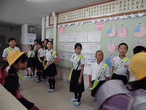 2019年9月19日 10時24分朝のあいさつ運動が行われています。