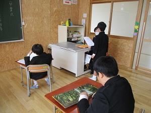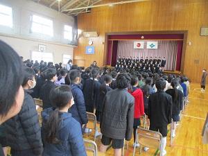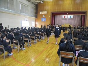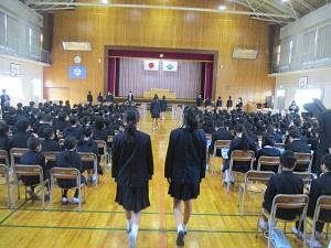 今日の2限目は、明日の卒業式に向けて最後の全体練習をしました。休み明けの月曜日でしたが、卒業生も在校生もとっても一生懸命頑張っていました。明日もどうぞよろしくお願いします。