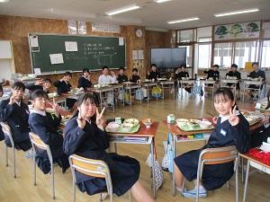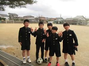 今日は卒業式前日。6年生は最後の朝休みサッカーを楽しんでいました。中央階段は、6年生が最後の学校への感謝に学校を掃除したくさんの飾りつけをしてくれました。どうもありがとうございます。そして、6年生は最後の給食を教室でみんな輪になって食べました。最後の給食は6年生の卒業お祝いメニューです。サクラご飯がとっても春らしいメニューでした。