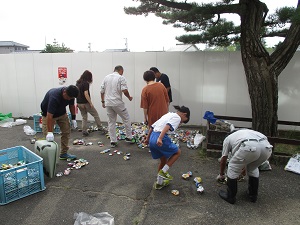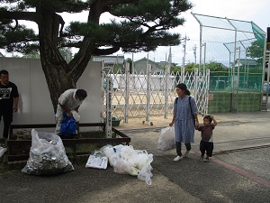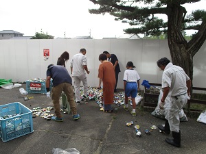 毎月行っているアルミ缶回収。今日も2年生保護者の当番さんが、朝早くからお世話をしてくださり、たくさんのアルミ缶が集まりました。